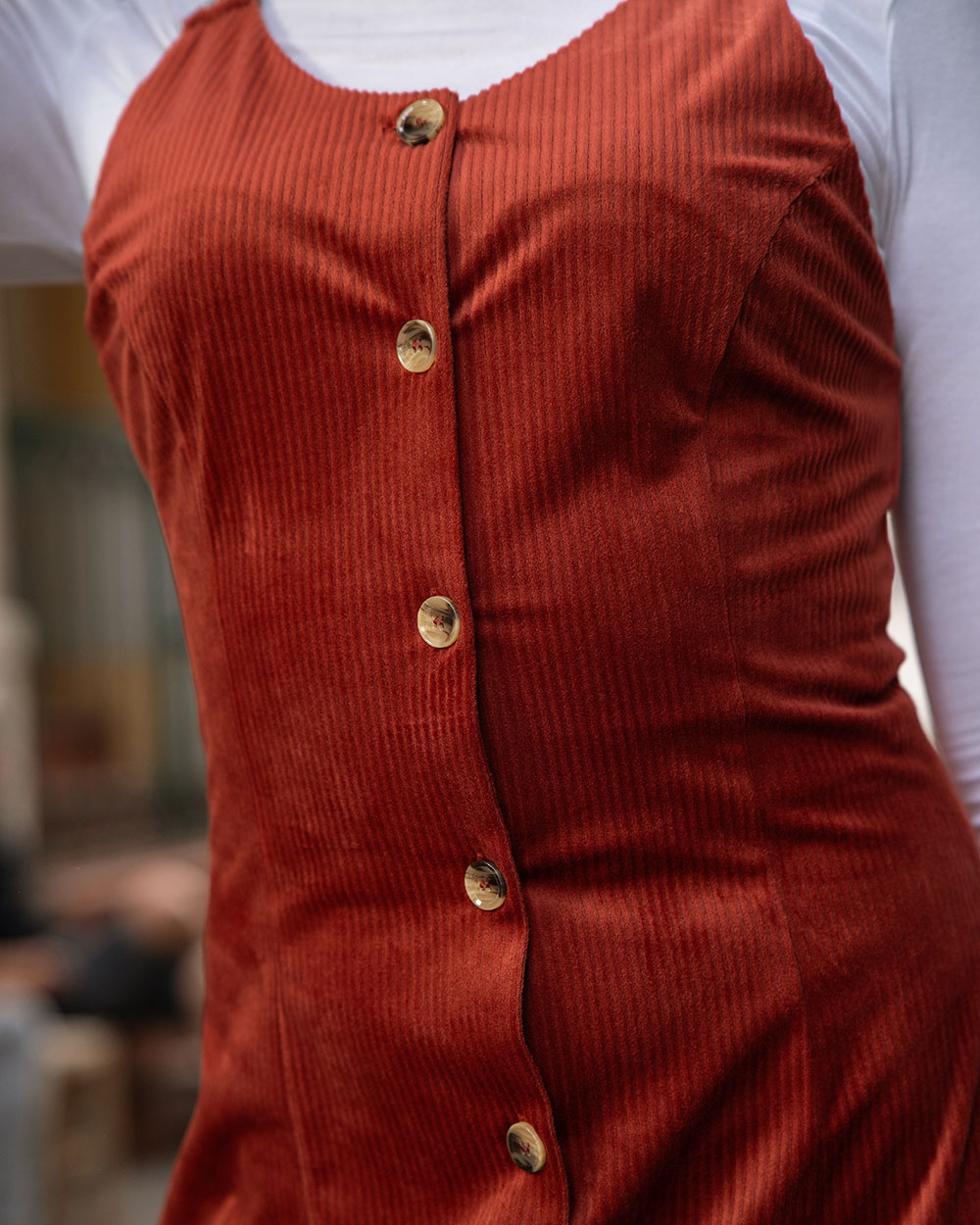 Casual Corduroy Dress Burnt Sienna