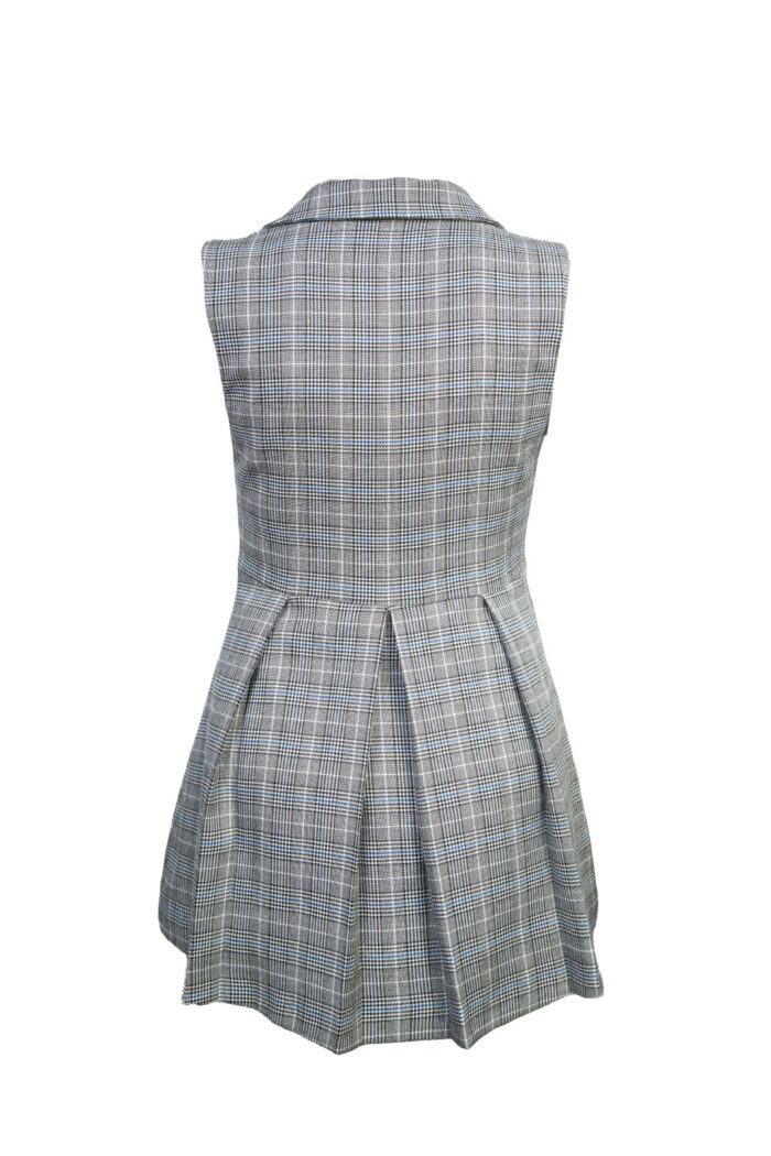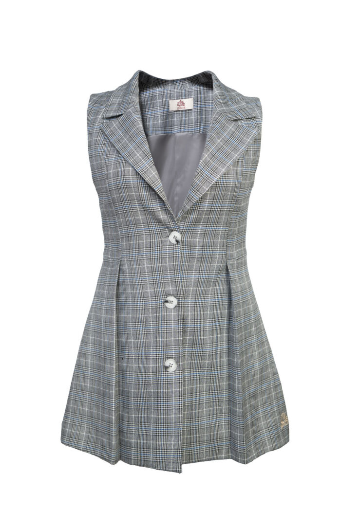 Elevate your wardrobe with the Sleeveless Blazer Vest in Charcoal Gray, a modern classic tailored for confident elegance. Featuring a structured silhouette, flattering pleats, and sleek lapels, it pairs effortlessly with both casual and smart styles. Designed for the woman who values timeless sophistication with a bold twist.